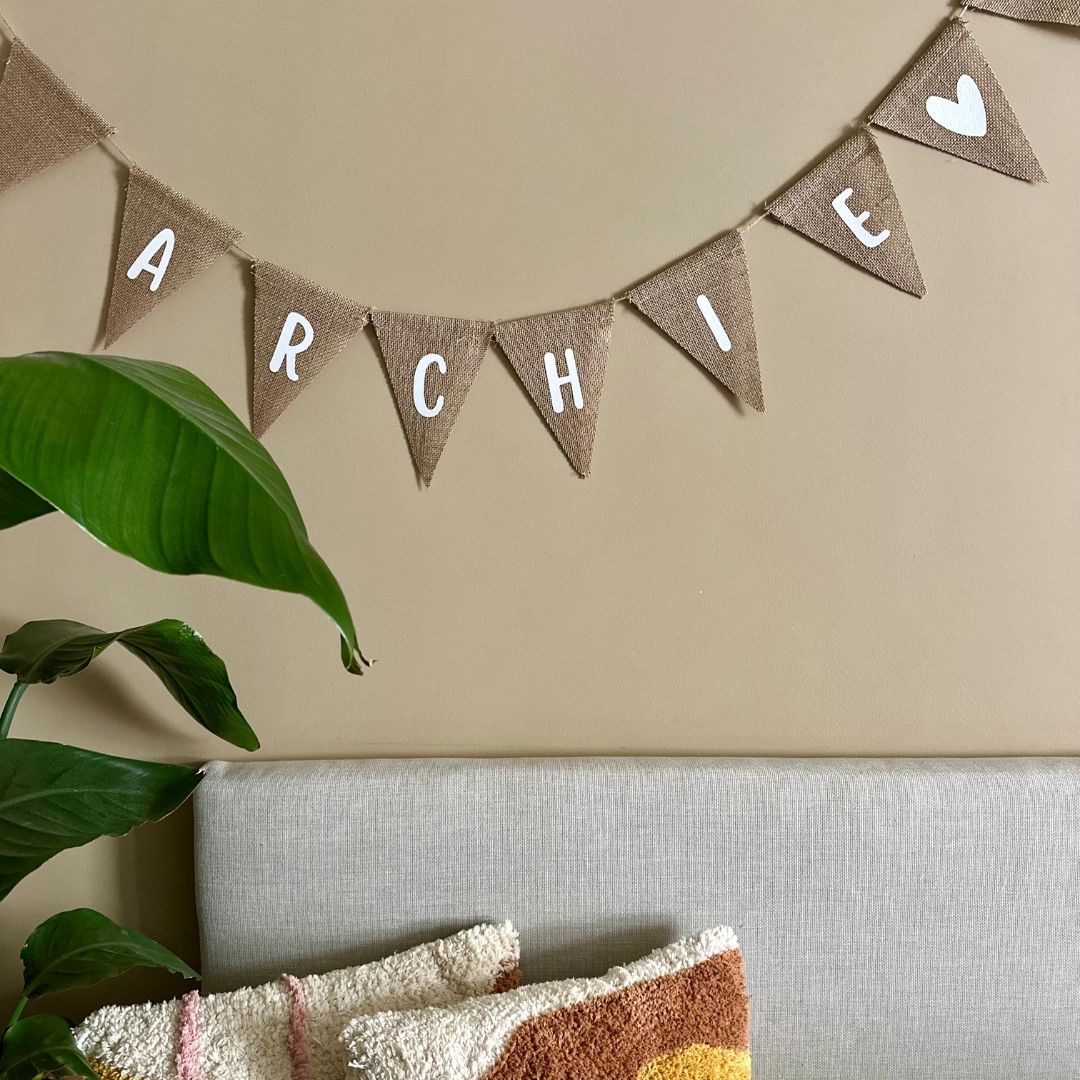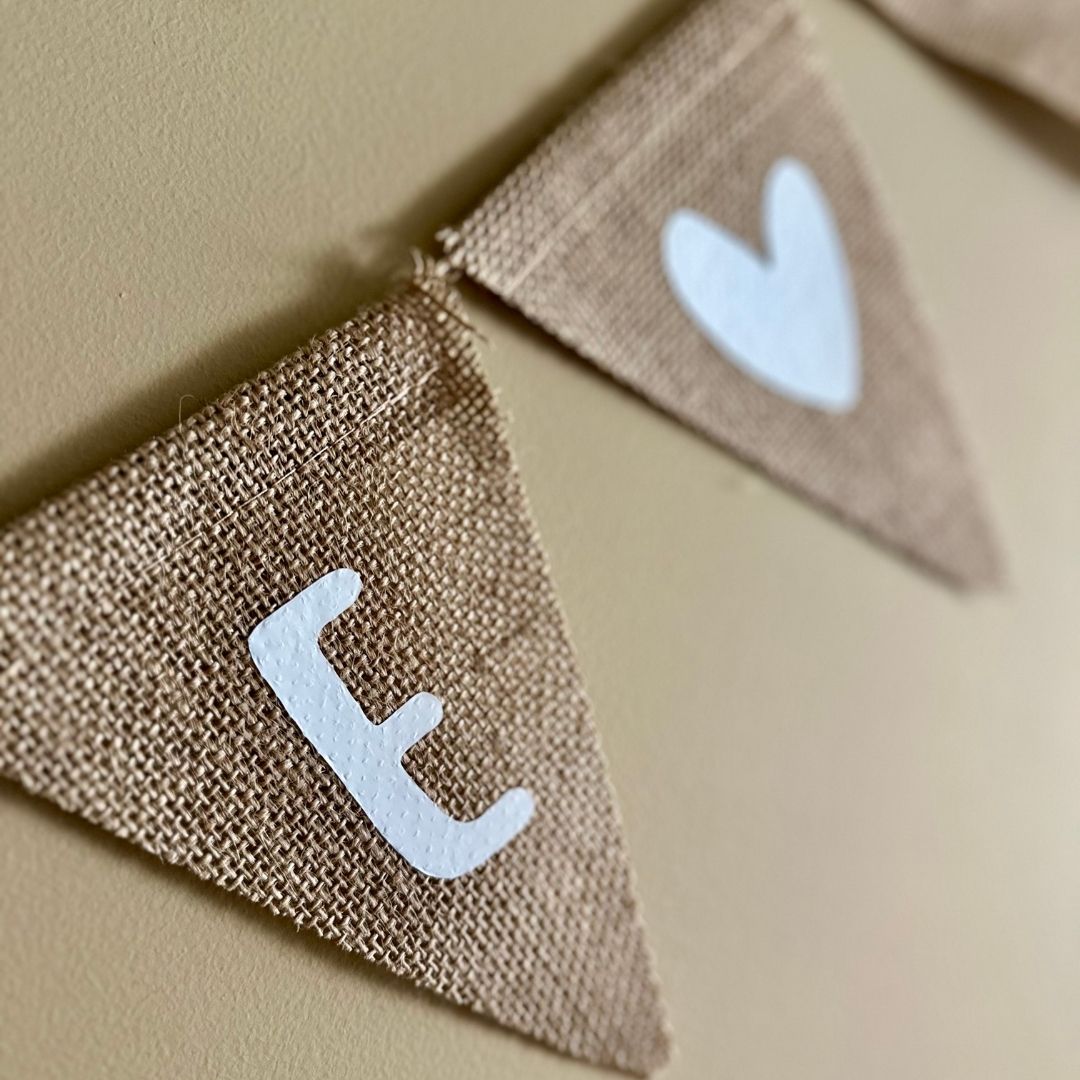 Hoera! Jouw muisje is bijna jarig. Of misschien zoek je juist een blijvende leuke naamslinger om de babykamer nét dat beetje extra te geven. Voor welke gelegenheid je ook iets zoekt, een jute vlaggenlijn met naam is altijd goed idee. Waarom? Omdat het erg mooi staat en ook nog eens herbruikbaar is!