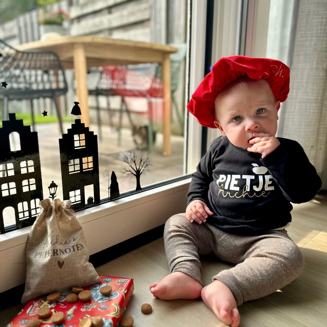 Je weet pas hóe leuk Sinterklaas weer is wanneer je kinderen hebt die er heilig in geloven. De twinkel in hun oogjes en de anticipatie naar de grote dag is magisch. Daarom besloten we dit jaar méér Sinterklaas-items in onze shop te voegen. Want ja, wij zitten zelf midden in deze fase. En hoe leuk is dan bijvoorbeeld een eigen pietenshirt met naam?! Zo heeft jouw kindje helemaal het gevoel óók 'n pietje te zijn, en eerlijk is eerlijk: het ziet er gewoon heel erg schattig uit. Omdat de Sinterklaas periode in een koude maand valt hebben we gekozen voor katoenen shirtjes met lange mouw. Zo hoeft je kindje geen kou te lijden terwijl het met smart op de goedheiligman wacht ;)